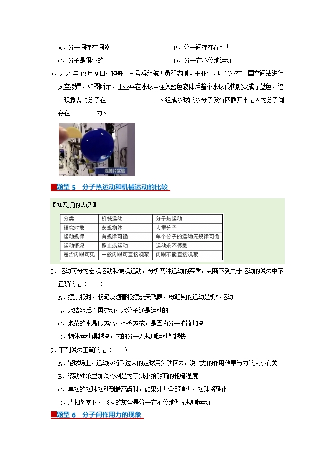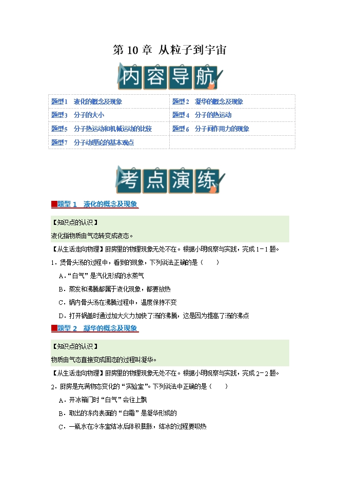 【内容简介】第10章 从粒子到宇宙--2025-2026学年沪粤版物理八年级下册同步考点演练
