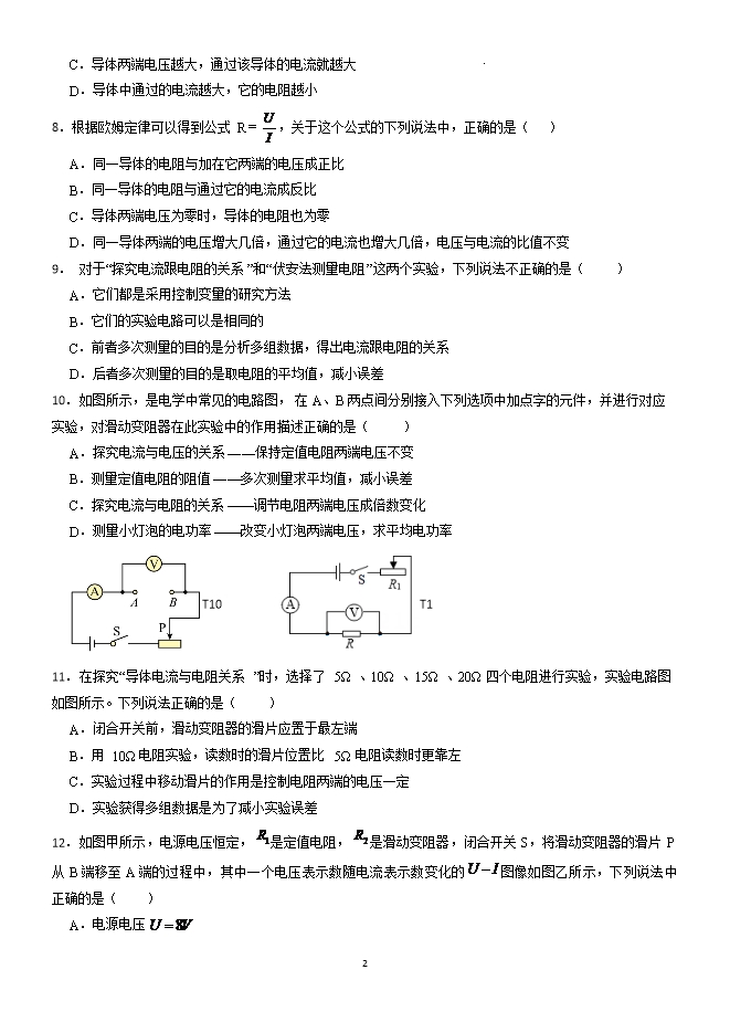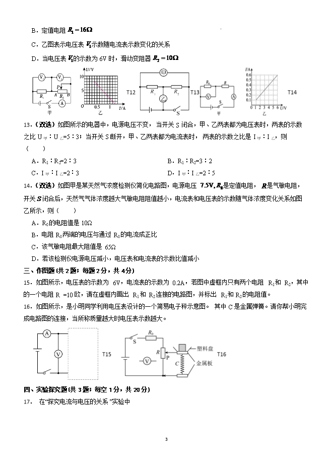 第17章 欧姆定律 专题训练--2025-2026学年九年级阶段性调研试题十二(人教版)【王牌物理河南专版】