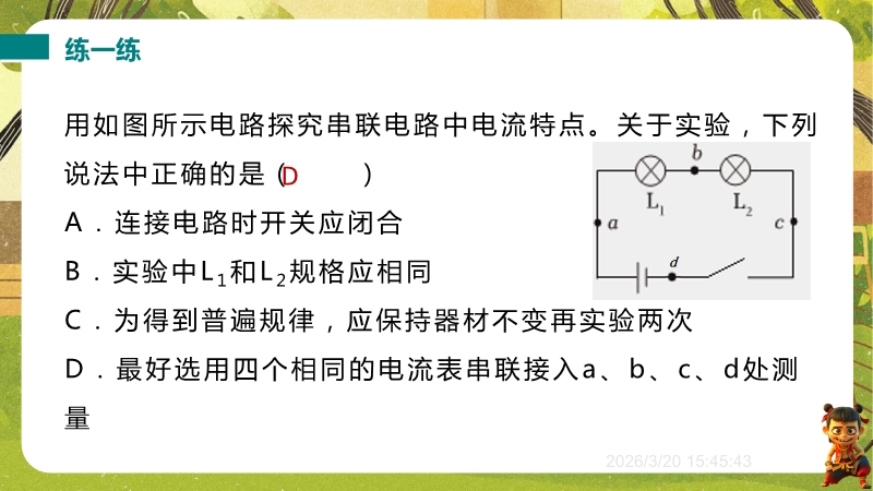 11.4.2 串、并联电路中电流的关系 课件--2025-2026学年北师大版九年级物理全一册精做课件