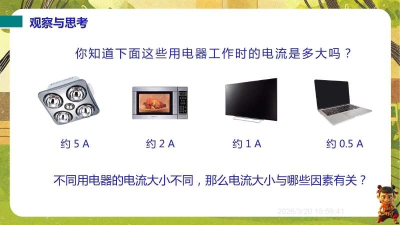 【内容简介】聚焦“探究电流与电压、电阻的关系”,通过用电器电流大小的观察与思考导入,以控制变量法为主线,引导学生经历提出问题、猜想假设、设计实验、记录数据、分析图像到得出结论的完整探究过程,搭建连贯的学习支架。其亮点在于采用动画演示实验过程,结合数据记录与图像绘制培养科学探究能力,通过“练一练”巩固结论并渗透科学思维,课堂小结系统梳理控制变量法、滑动变阻器作用等要点。助力学生建立电流与电压、电阻关系的物理观念,为教师提供结构化教学资源,提升教学效率。