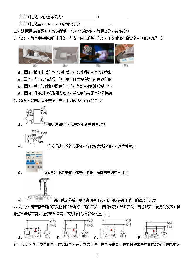第19章 生活用电 培优训练--2025-2026学年九年级阶段性调研试题二十(人教版)【王牌物理河南专版】