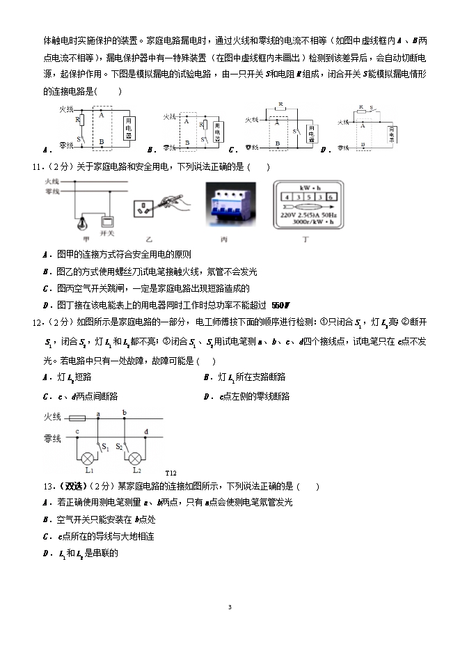 - 52第19章 生活用电 专题训练--2025-2026学年九年级阶段性调研试题十九(人教版)【王牌物理河南…