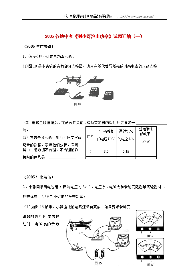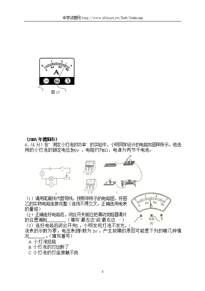 2005各地中考《测小灯泡电功率》试题汇编(一)