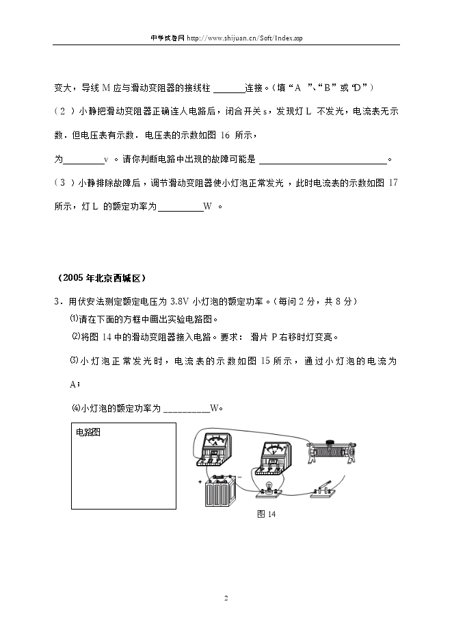 - 下一份试卷:2005各地中考《测小灯泡电功率》试题汇编(二)