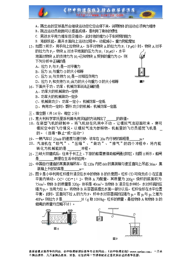 【内容简介】一、下列各小题均有四个选项,其中只有一个选项符合题意。(共24分,每小题2分)