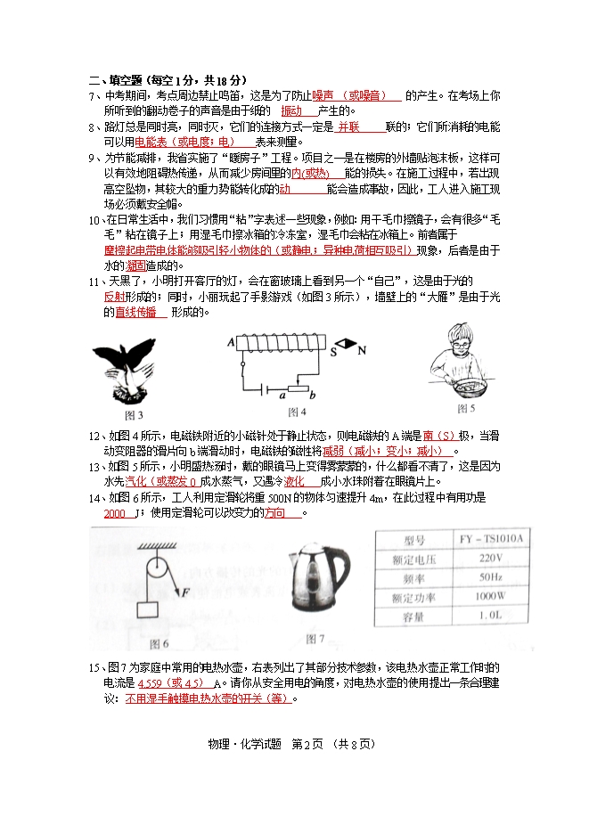 7、中考期间,考点周边禁止鸣笛,这是为了防止噪声 (或噪音) 的产生。在考场上你所听到的翻动卷子的声音是由于纸的 振动 产生的。