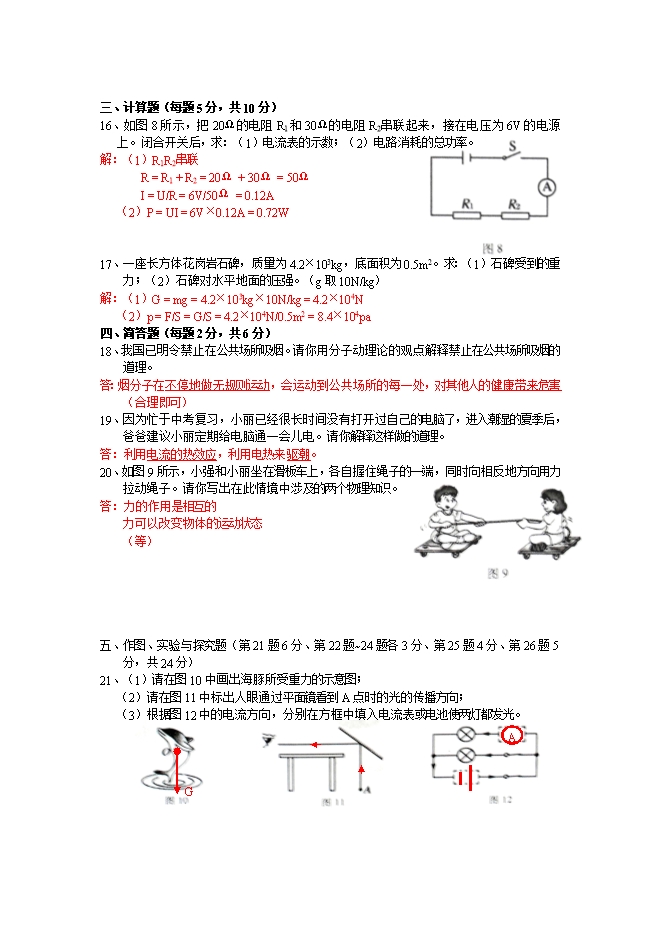吉林省2012年初中毕业生学业考试物理试题及答案(word版)