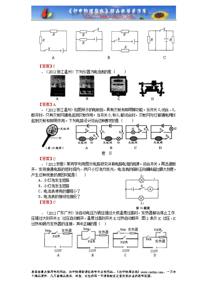 2012年全国中考物理90套试题分类汇编--电流和电路