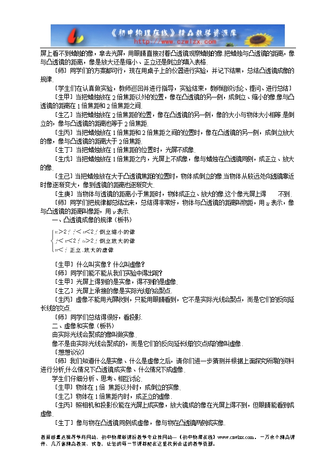 1.通过研究凸透镜成像的实验,以及对其成像规律的分析有意识地渗透辨证唯物主义 观点.