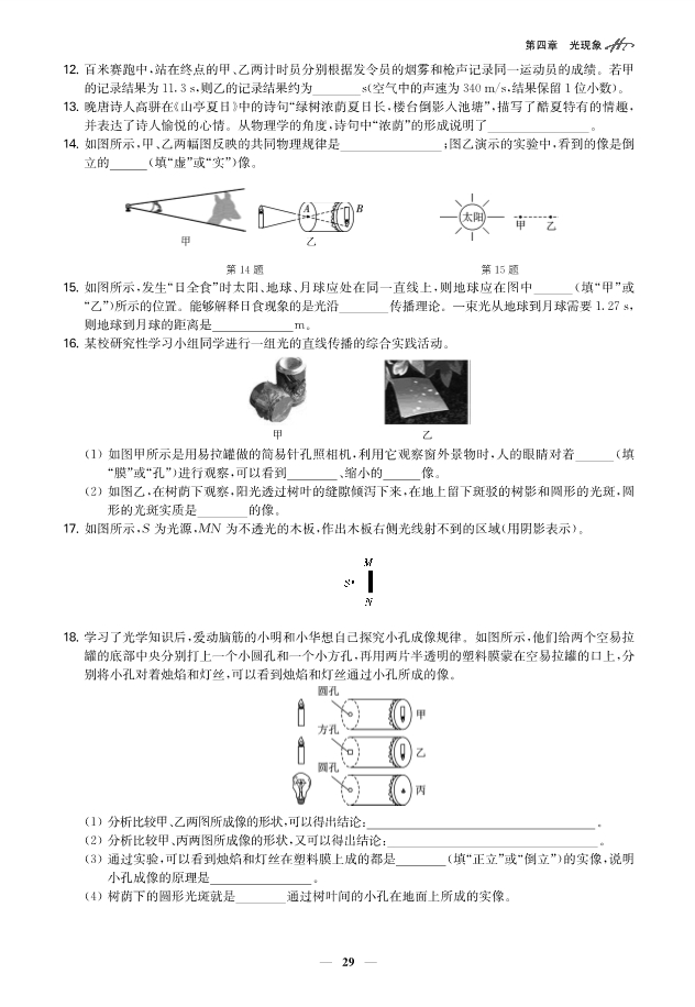 - 下一份试卷:北师大版《第五章 光现象》章末检测题及答案