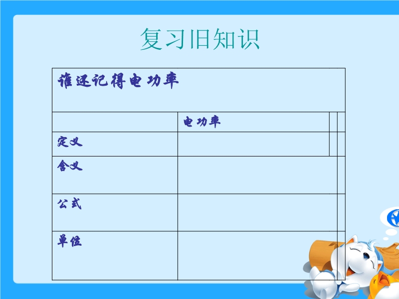 计算公式是:___________.其中W表示______,单位是____;t表示________,单位是______. P表示_______,根据公式写出的功率的单位是_______,专用单位是______简称_____,符号是______,两个单位之间的关系是______________.工程技术上还常用________做单位,1kW=________W.功率是机械的_____________之一.