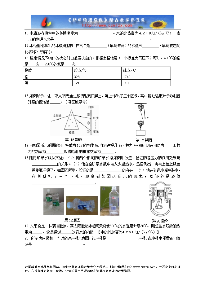 - 下一份试卷:2013沈阳市大东区九年级物理第二次模拟试题及答案