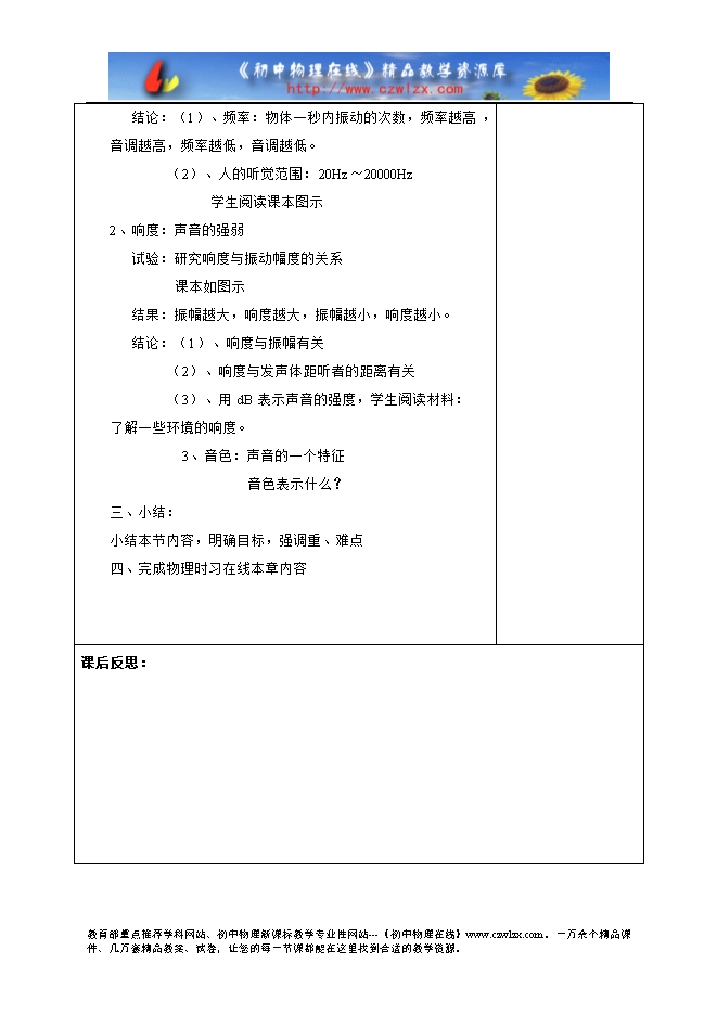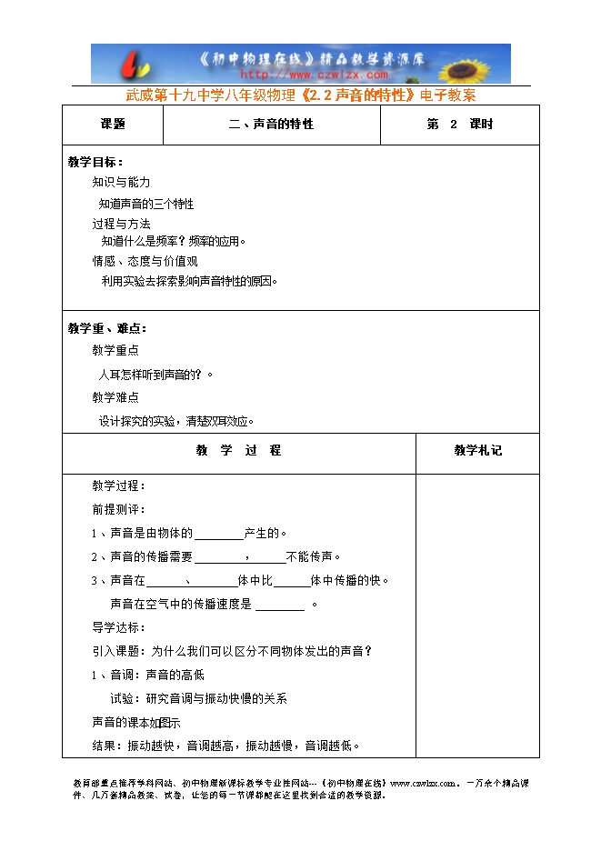 武威第十九中学八年级物理《2.2声音的特性》电子教案