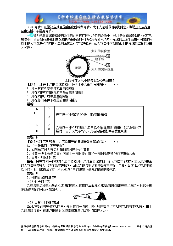 2013-2014学年《志鸿全优设计》人教版八年级上册讲解与例题:4.1光的直线传播