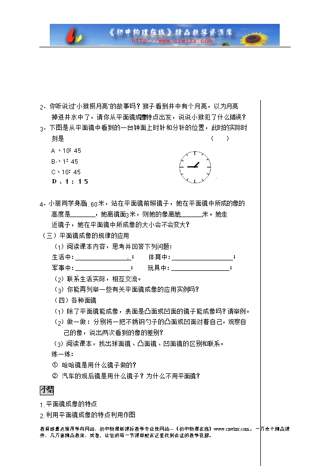 3.知道什么是凹面镜和凸面镜以及它们对光线的作用。