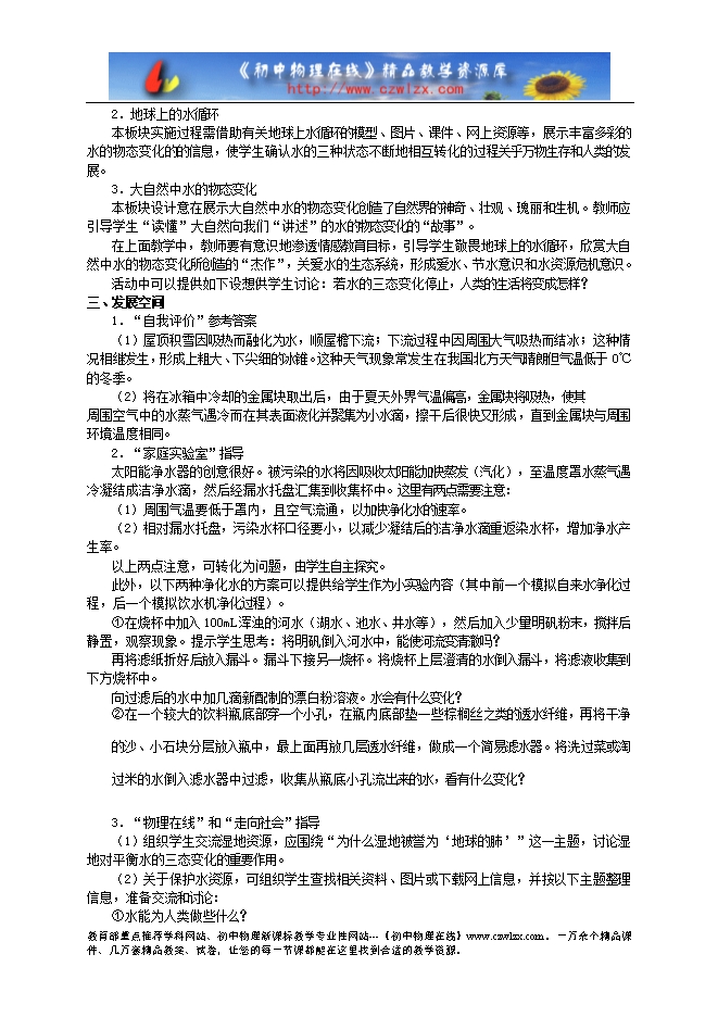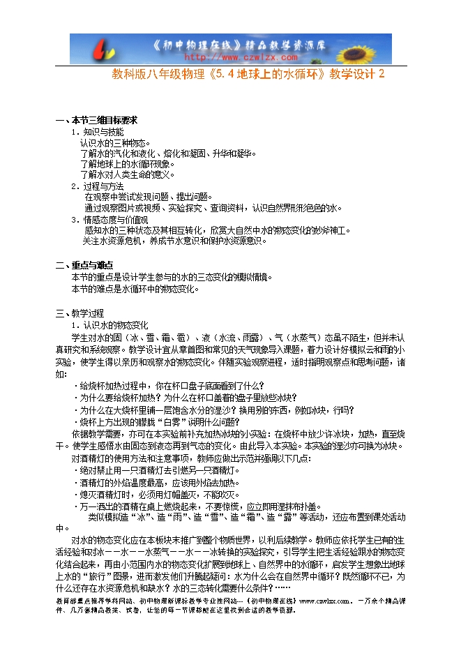 教科版八年级物理《5.4地球上的水循环》教学设计2