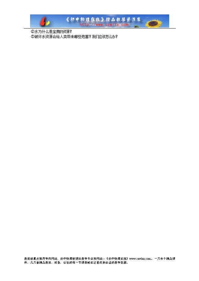 关注水资源危机,养成节水意识和保护水资源意识。二、重点与难点