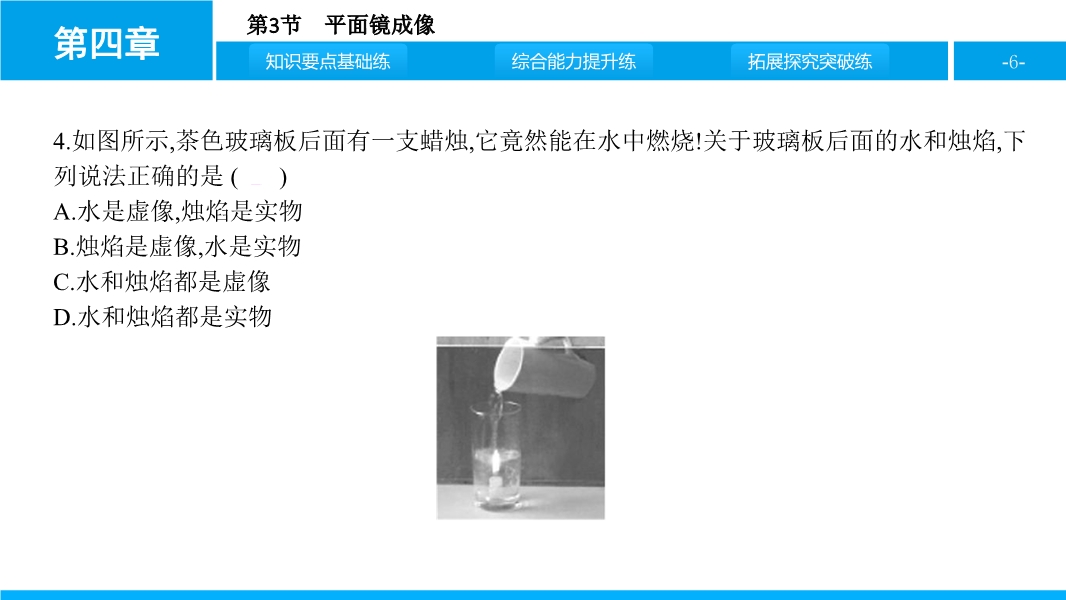 人在屏幕上的影子 蜡烛通过小孔成像 荷花在水中的倒影 铅笔好像在水面处折断了