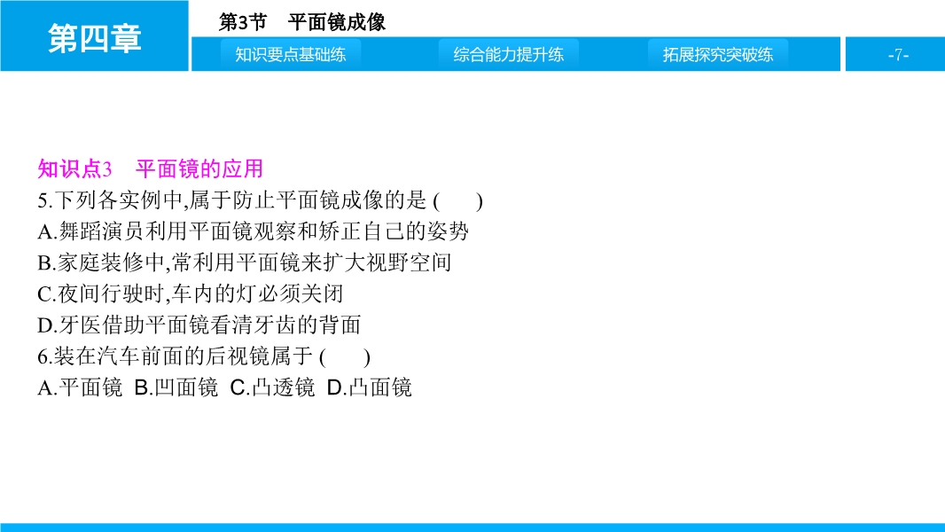 3.如下图所示的四种现象中,与平面镜成像原理相同的是( )