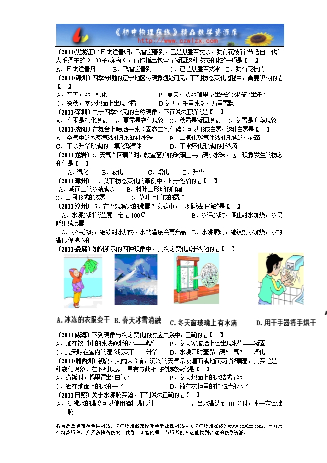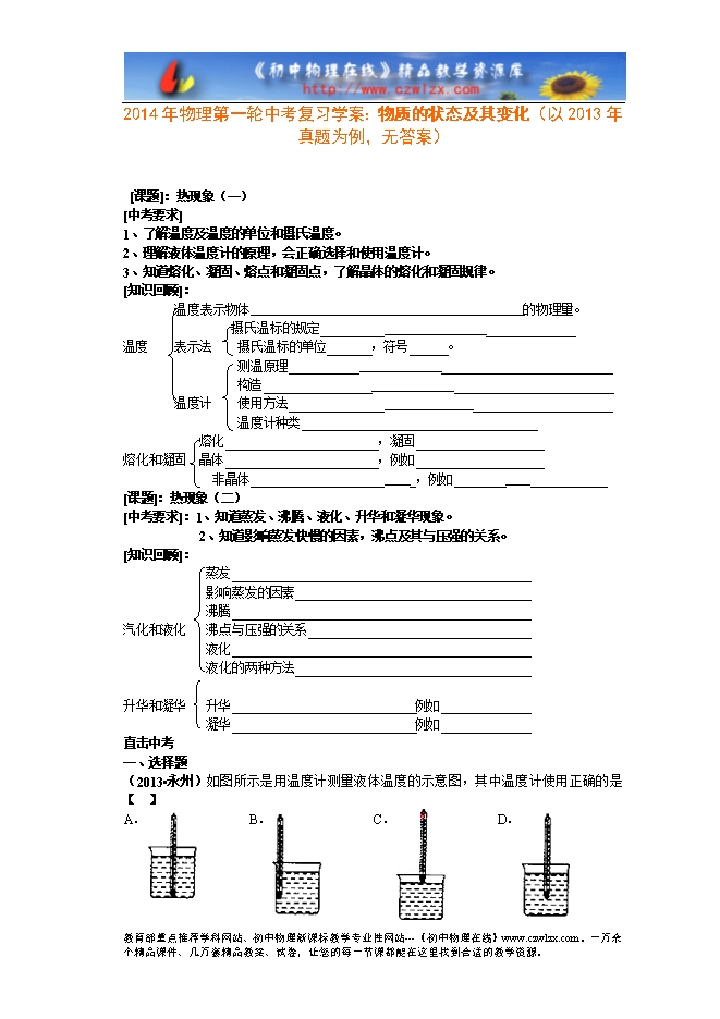 2014年物理第一轮中考复习学案:物质的状态及其变化(以2013年真题为例,无答案)