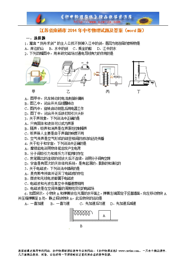 1.寓言“刻舟求剑”的主人公找不到掉入江中的剑,是因为他选择的参照物是