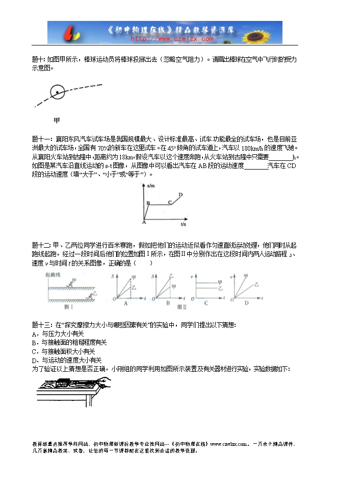 题四:小明同学在学习了运动和力的知识后有了以下的认识,其中正确的是( )