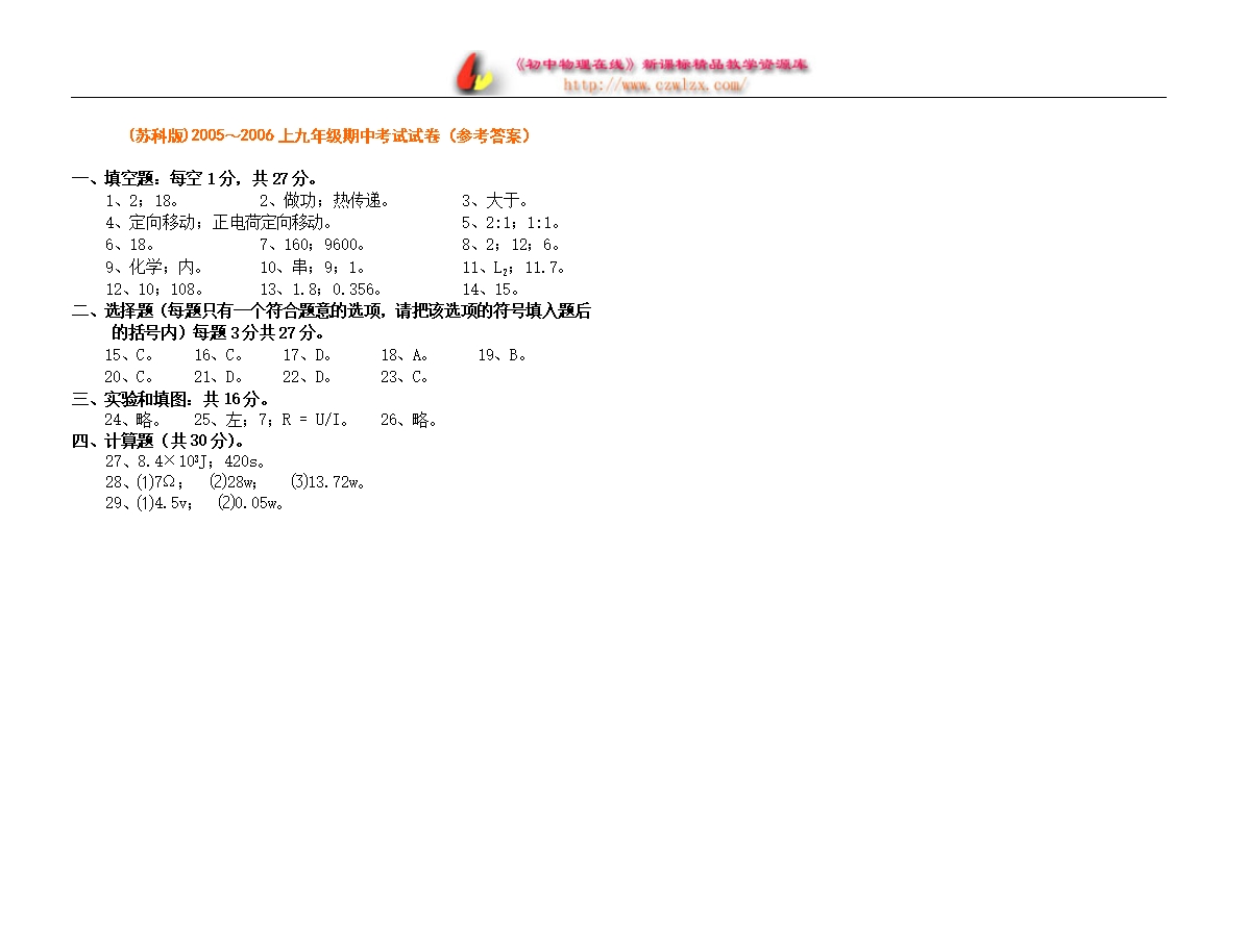 - 下一份试卷:兴化市戴泽中学2006年初三物理期中试卷