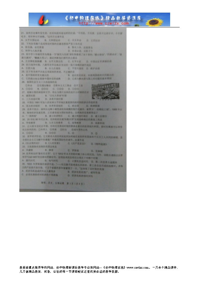 2015年广东省初中毕业生学业考试物理、历史、生物试题(扫描版,含答案)
