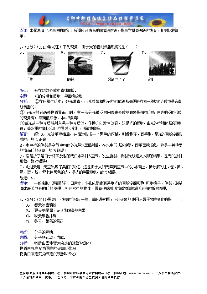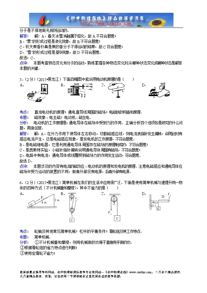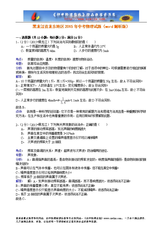黑龙江省龙东地区2015年中考物理试题(word解析版)