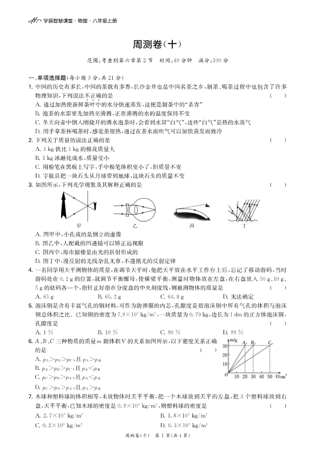 1.物质是由大量_______组成的;扩散现象证明________________________。
