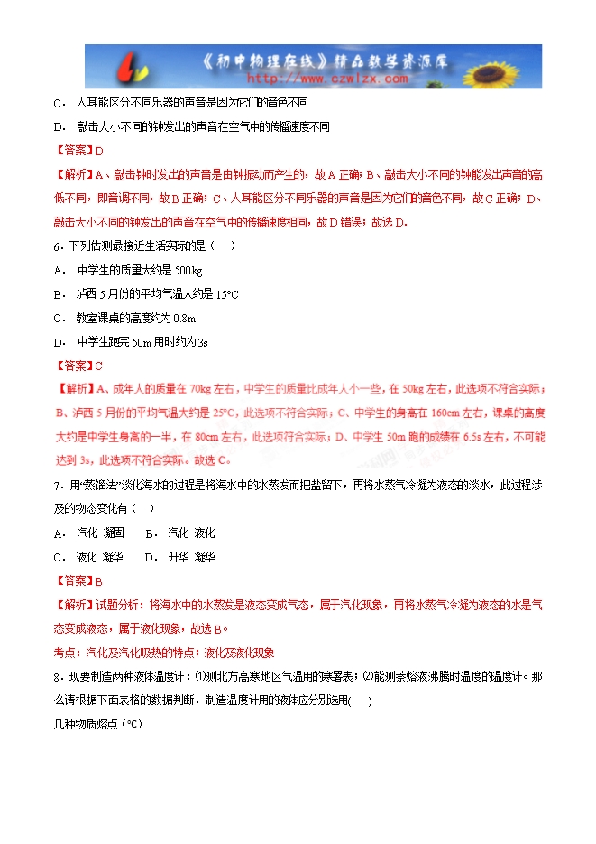 6.小明同学在学习了声现象后,总结了以下四点,其中说法错误的是