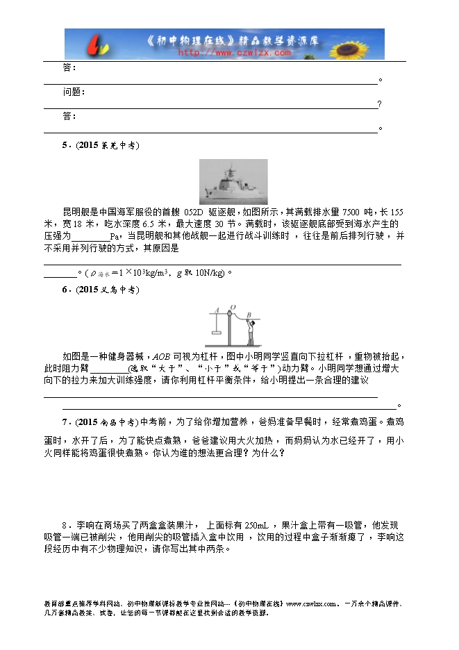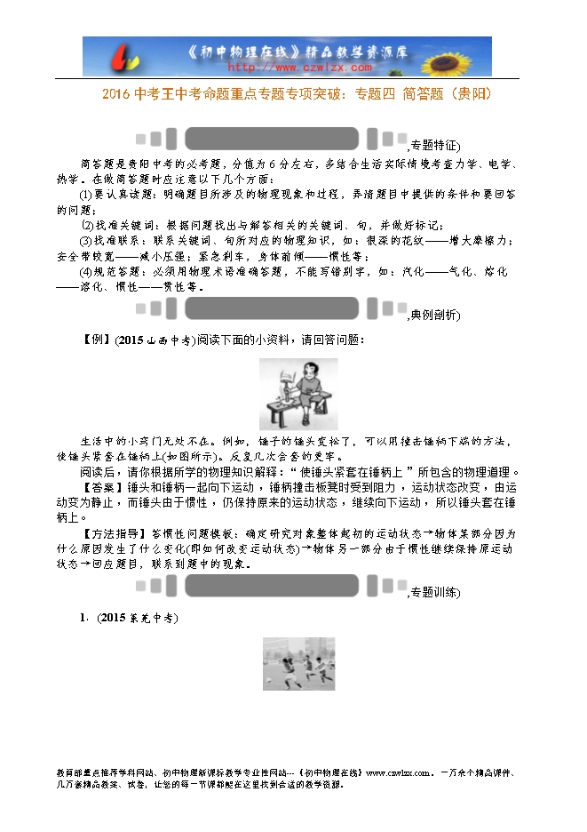 简答题是贵阳中考的必考题,分值为6分左右,多结合生活实际情境考查力学、电学、热学。在做简答题时应注意以下几个方面: