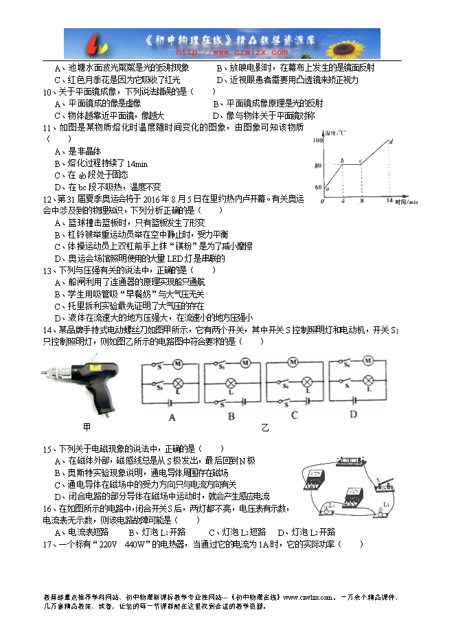 山东省临沂市2016年中考物理试题(word版试题,附扫描版答案)
