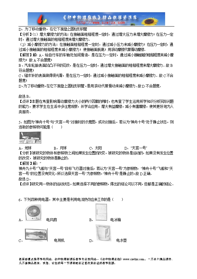 B、考场周围禁鸣喇叭是从噪声的产生处减弱噪声,故B不符合题意;