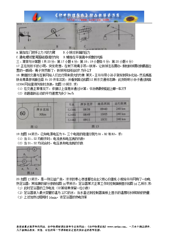 江西省2016年中考物理试题(word版试题,有扫描版答案)