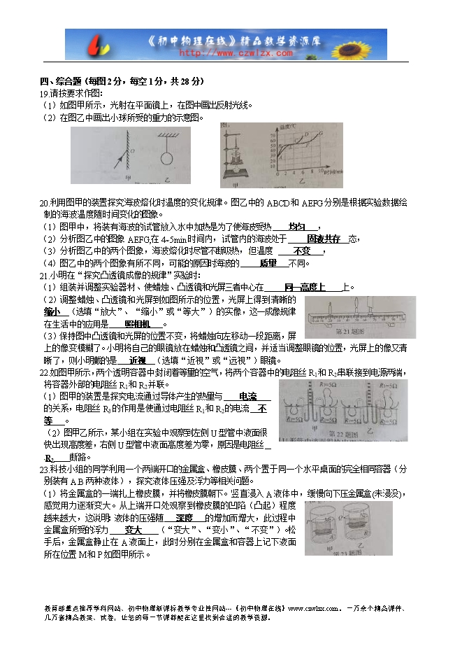 - 18852024年吉林省中考物理试题及答案(word版)