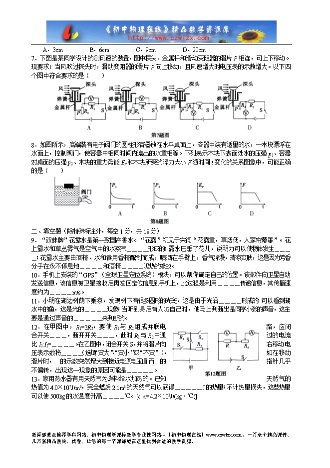 - 下一份试卷:广东省2016年中考物理试题(word解析版)
