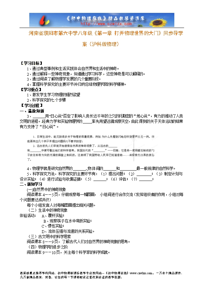 河南省濮阳市第六中学八年级《第一章 打开物理世界的大门》同步导学案(沪科版物理)