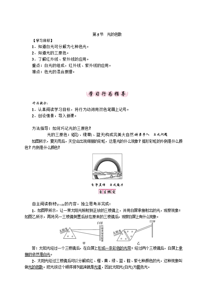 重点:白光的组成,红外线、紫外线的应用。