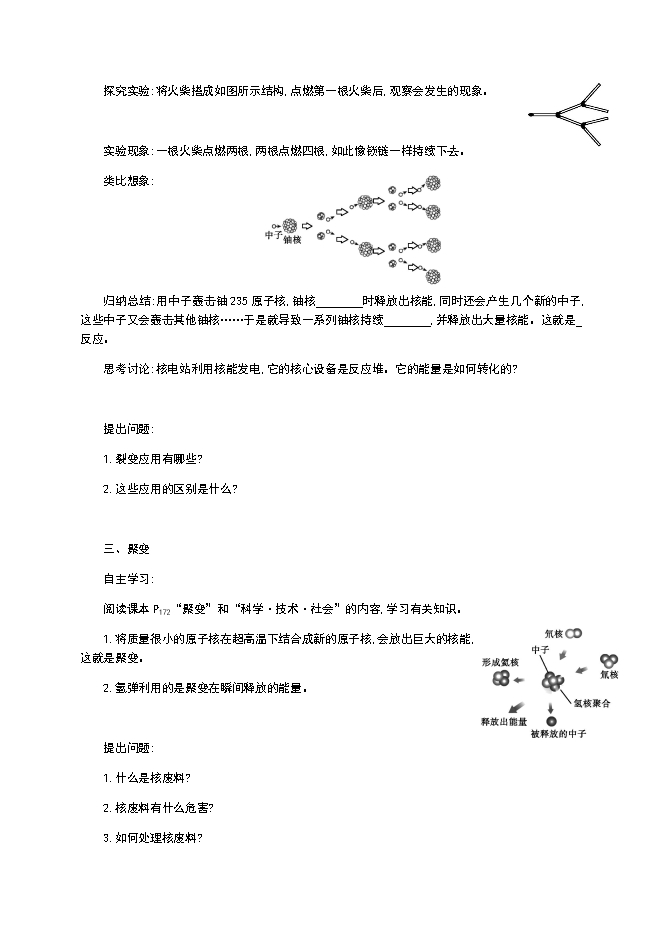 阅读课本P172“聚变”和“科学?技术?社会”的内容,学习有关知识。