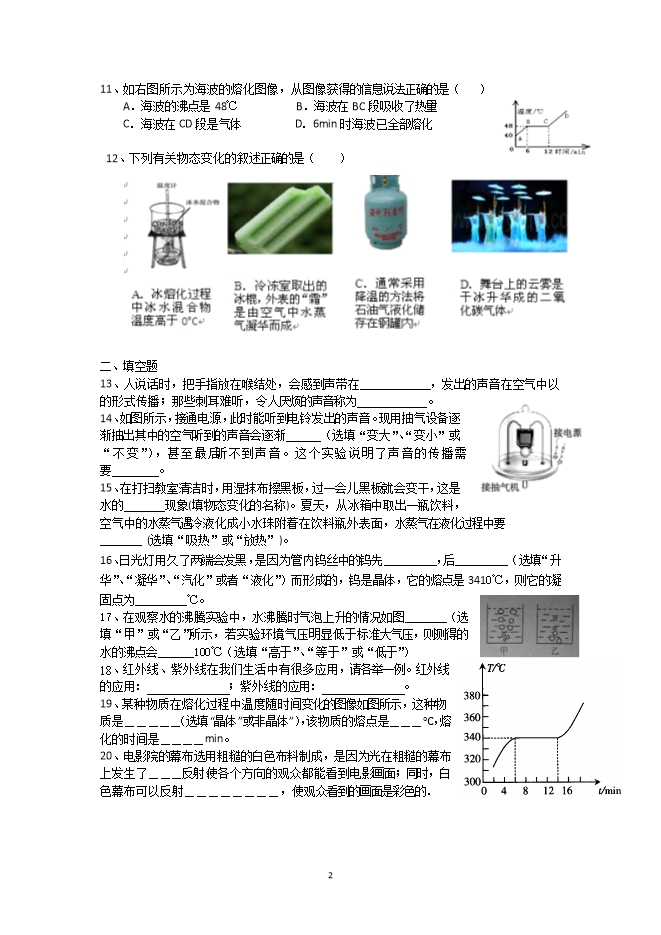 2、我们很空易分辨出熟人的声音,主要根据声音的 ( )