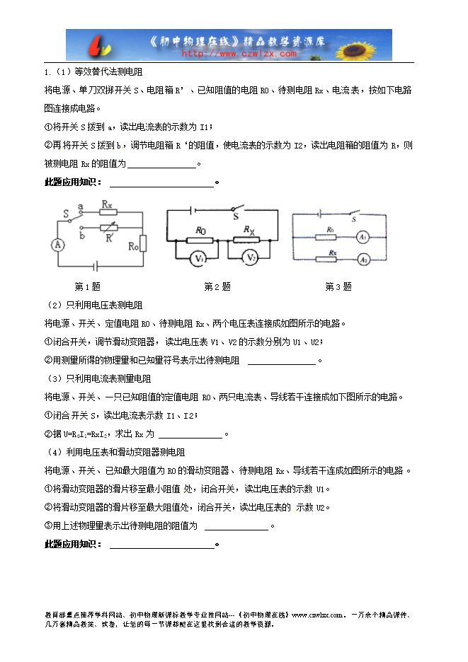 山东省安丘市东埠初级中学导学案:17.3电阻的测量(人教版九年级物理)
