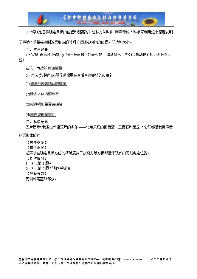 通过学习,了解声在现代技术中的应用,进一步增加对科学的热爱。