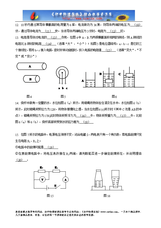 2. 答题时,考生务必按答题要求在答题纸规走的位置上作答,在草稿纸,本试卷上答题一律无效。一、选择题(共16分)