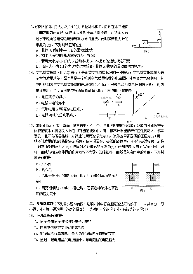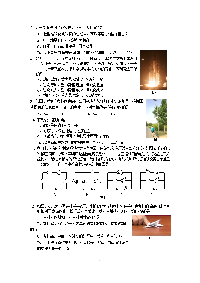 北京市海淀区2017届九年级第二学期初三二模物理试题及答案(期末练习)