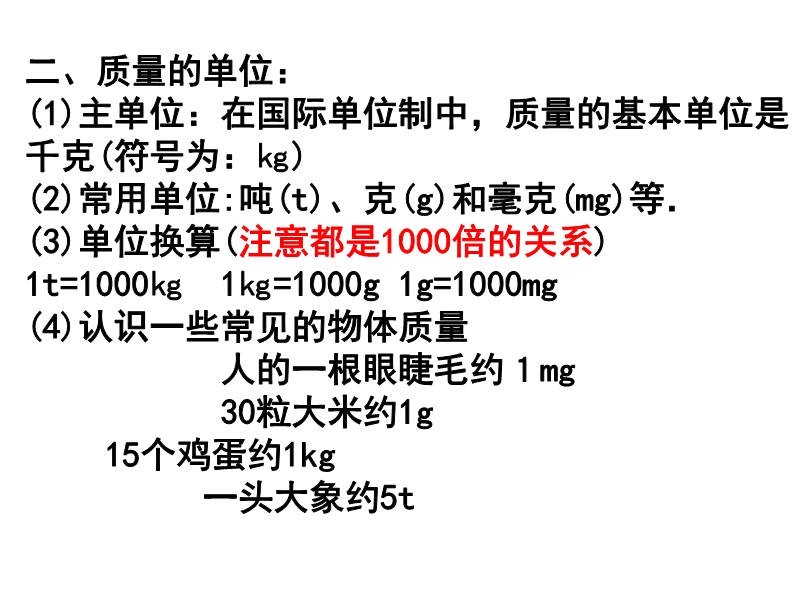 课件内容:以15张幻灯片分别对质量的定义、单位的转换、天平的使用等方面进行详细的讲解,并针对本课的重点内容——天平的使用讲解是非常的详细,注重了学生能力的培养和知识点的记忆。
