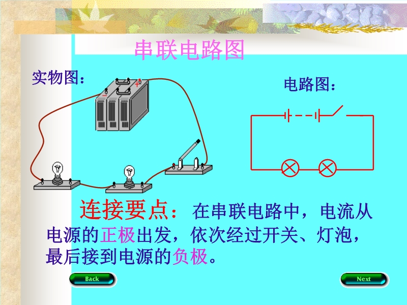【内容简介】本课件是串联电路和并联电路的完整的教学课件,共由35张幻灯片组成,教学过程设计详细、科学、合理,图片丰富精彩。教学设计不仅注意引导学生观察实验现象,还善于启发学生进行思考,总结结论。本课件可供教学“串联电路”或“并联电路”时参考选用。