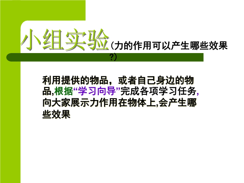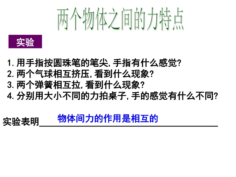 课件内容:根据上教版二期课改新教材八年级第三章《运动和力》第三节《力》的内容制作,课件运用了大量的图片和影片说明了力的相互作用和力的作用效果