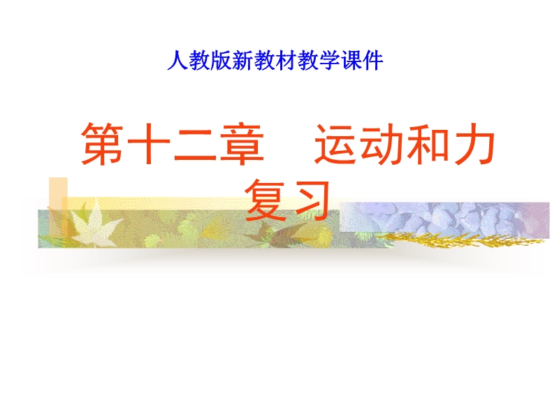 【内容简介】本课件以人教版新教材第12章运动和力为基础制作,共由20张幻灯片组成,重点突出,设计新颖、独特。主要引导学生复习了本章的全章知识,内容主要有运动和静止的概念、运动和静止的相对性、牛顿第一定律、惯性现象、二力平衡的知识等,课件中有复习提纲,有例题精选,有即学即练,精选的例题典型,分析详细,能提高学生的应用能力,即学即练可供学生练习使用。