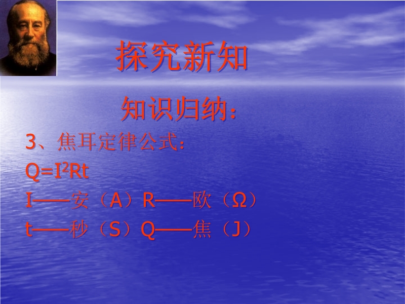 【内容简介】本课件为新人教版《8.4电与热》ppt+flash课件,其中包括21帐幻灯片和一个焦耳定律演示flash,使用flash时注意:先必须输入通电时间框中输入1-15分钟的有效时间,否则只有电表指针在动,温度计指数无变化。